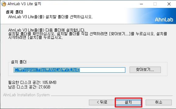 마침을 눌러서 V3 Lite를 설치를 완료해주시면 됩니다