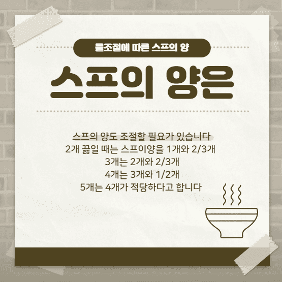 - 5개 끓일때 12컵 그리고 1/2컵이 적당하고 하네요